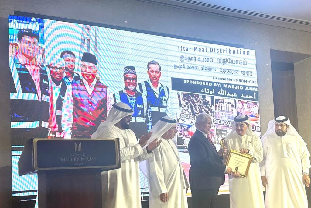 துபாயில் தமிழ் போரம் சார்பில் நடைபெற்ற Global Business Excellence Awards நிகழ்ச்சியில் ஈமான் தலைவர் பி எஸ் எம் ஹபீபுல்லகான் அவர்களுக்கு வாழ்நாள் சாதனையாளர் விருதும் பொது செயலாளர் ஹமீது யாசின் அவர்கள் சிறந்த சேவைக்கான விருதும் வழங்கப்பட்டது